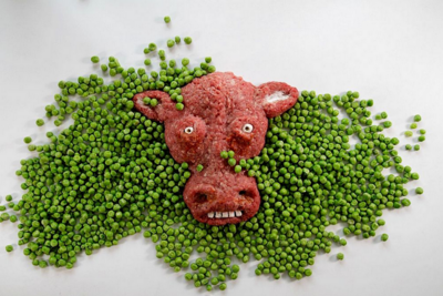 NO MEAT nimmt Bezug auf den übermäßigen Fleischkonsum und dessen unrealistische Darstellung in der Werbung. Dass das Gemüse das Fleisch verdrängt liegt im Bereich des Utopischen.
