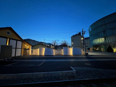Der Zaun entlang der Grundstücksgrenze zwischen der Energie AG und der Stern & Hafferl Gruppe in Gmunden wurde von Florian Ziller und Fatemeh Naderi umgestaltet.