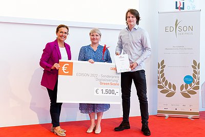 Der Sonderpreis für Digitalisierung wurde von Jan Schweiger (HuForce GmbH) und Angelika Sery-Froschauer (Wirtschaftskammer Oberösterreich) überreicht und ging an Karoline Pöhn (Kunstuniversität Linz, Team Nachhaltigkeit sowie Absolventin der Studienrichtung Fashion & Technology) und ihr Team für das Projekt „Green Score, die Browser-Extension, die Bekleidung in Onlineshops ein Nachhaltigkeits-Zeugnis nach dem Ampel-Prinzip ausstellt. Der Preis im Wert von EUR 1.500 wurde von der Wirtschaftskammer Oberösterreich zur Verfügung gestellt.