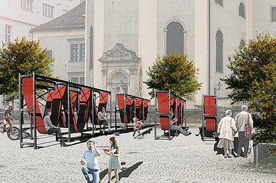 „Hängepartie“ am Linzer Pfarrplatz © Johanna Brunner, Sarah Dorfer und Valentina Hölz