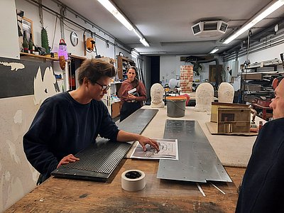 Bei einer Führung durch das Haus konnten wir nicht nur einen Blick in die Werkstätten werfen, sondern wir erfuhren auch viel über die Tätigkeiten des Theater Phönix abseits der Aufführungen, wie die Vermittlungsarbeit und das Arbeiten im Stadtteil.