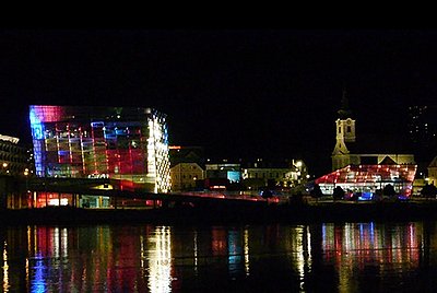 Im Lichtlabor konnten am 22. November 2013 interessierte BesucherInnen mit einer Lichtmaschine Videoclips für die Bespielung des Ars Electronica Centers gestalten.