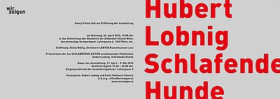 Die Ausstellung „Hubert Lobnig. Schlafende Hunde“, im Rahmen der von Georg Folian initiierten Ausstellungsreihe „wir zeigen“, gibt einen ersten großen Überblick über seine aktuellen und jüngeren Arbeiten und Projekte, speziell konzipiert für den markanten Raum des Atelierhauses der Akademie der bildenden Künste. Das ebenfalls an diesem Abend präsentierte gleichnamige Buch bei Schlebrügge.Editor beleuchtet Lobnigs Schaffen umfassend.