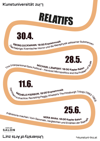 Im Kunstwort »relatifs« klingen Verhältnisse und Beziehungen an, aber auch Verwandte und Relais. Die Veranstaltungsreihe versteht sich so: als eine Schaltstelle zwischen verschiedenen kunst-, kultur- und medienwissenschaftlichen Ansätzen, als Vernetzungsstruktur zwischen Forschungen, die auf den ersten Blick disparat wirken, wie eine Familienfeier, anlässlich derer auf den Tisch kommt, was gerade unter den Nägeln brennt.