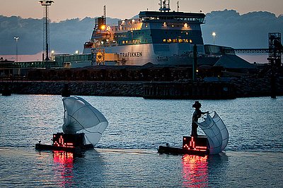 Interactive art on water. Presenting some of the art and experiences the years aboard the art ship Illutron have brought me. How to make an audience interact with things on water. Exploiting the physical and conceptual properties of a body of water. Simple ways to make electronics and mechanics work in a wet environment. Successes, failures and experiences.