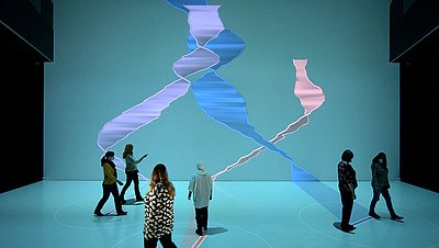 Die Intention der  „Kooperative Ästhetik besteht darin, den Deep Space in einen Raum zu verwandeln, in dem die Besucher*innen durch Herumgehen den visuellen Output der Wand-und Bodenprojektionen und den Sound  beeinflussen.