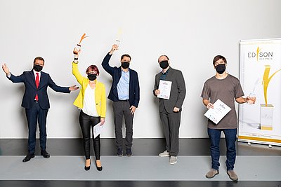 Der EDISON 2020 in Gold ging an Viktor Weichselbaumer und sein Team von „yokai studios“ (Linz) – sie bieten eine Technologie, die der Textilindustrie zusammen mit 3D-Druck und Robotisierung die Option bietet, die Fertigung wieder aus Fernost nach Europa heimzuholen.