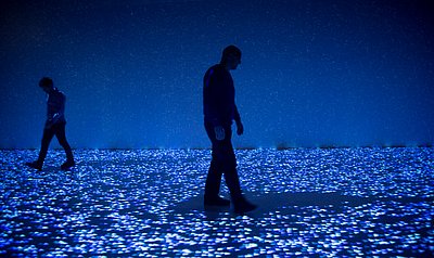 Bei „Flow“ fühlt es sich an, als würde man mitten in einem reißenden Fluss stehen. Am Boden des Deep Space 8K des Ars Electronica Center „fließen“ tausende kleine Pfeile von einer Wand zur Anderen, während im Hintergrund das Rauschen eines Flusses zu hören ist. Betritt man die Projektionsfläche mit den Pfeilen, verändert sich deren Strömung. Produziert wurde „Flow“ von Poyraz Yildirim im Rahmen seines Studium „Zeitbasierte und Interaktive Medien“ an der Kunstuniversität Linz.