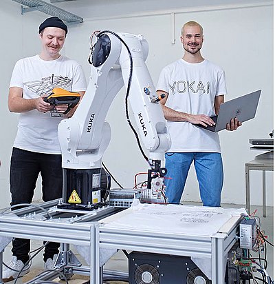 Auszeichnung für "Yokai", Viktor Weichselbaumer und Micheal Wieser, Studierende der Zeitbasierten und Interaktiven Medien für ihr Projekt "Re-Think Manufacturing".