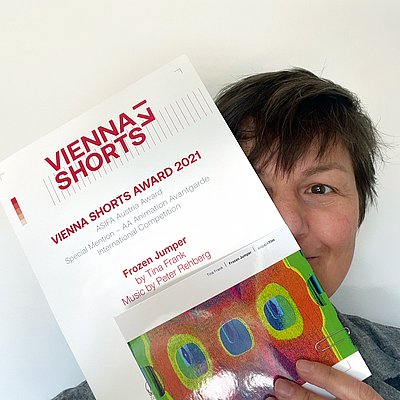zur VIENNA SHORTS AWARD 2021 "Special Mention" für ihren Kurzfilm FROZEN JUMPER!