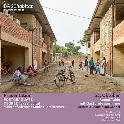 Das Studio BASEhabitat setzt sich seit 15 Jahren intensiv mit diesen globalen Herausforderungen auseinander und entwickelt Projekte mit Modellcharakter, über die Verwendung nachhaltiger Baustoffe, die Prinzipien klimagerechten Bauens und partizipative Ansätze. Für künftige ArchitektInnen sollen diese Planungs- und Projektgrundsätze selbstverständlich sein.