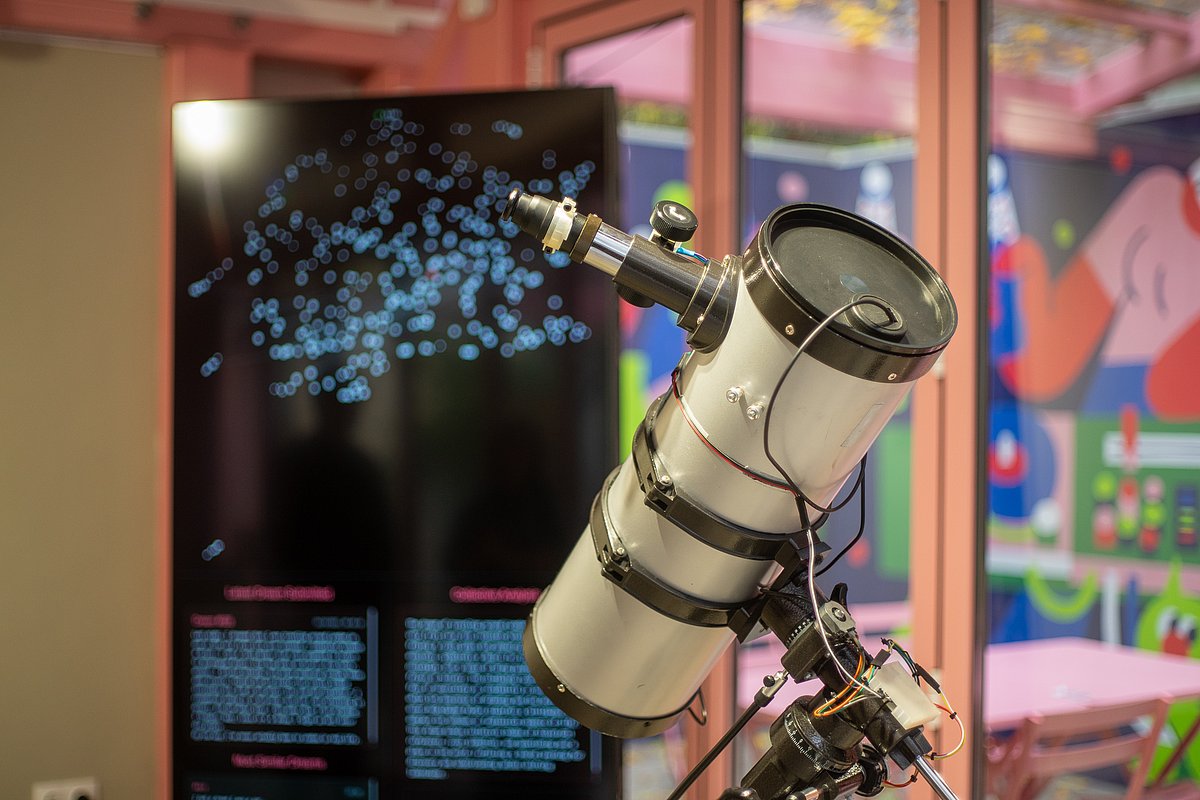 Alongside the online platform, DreamAtlas exists as an installation featuring a repurposed telescope. Modified and equipped with electronics, this tool traditionally used for gazing outward into space becomes an interface for navigating inward through the dream constellation. Next to it sits a cyberdeck terminal, inviting visitors to contribute their own dreams and join the map.