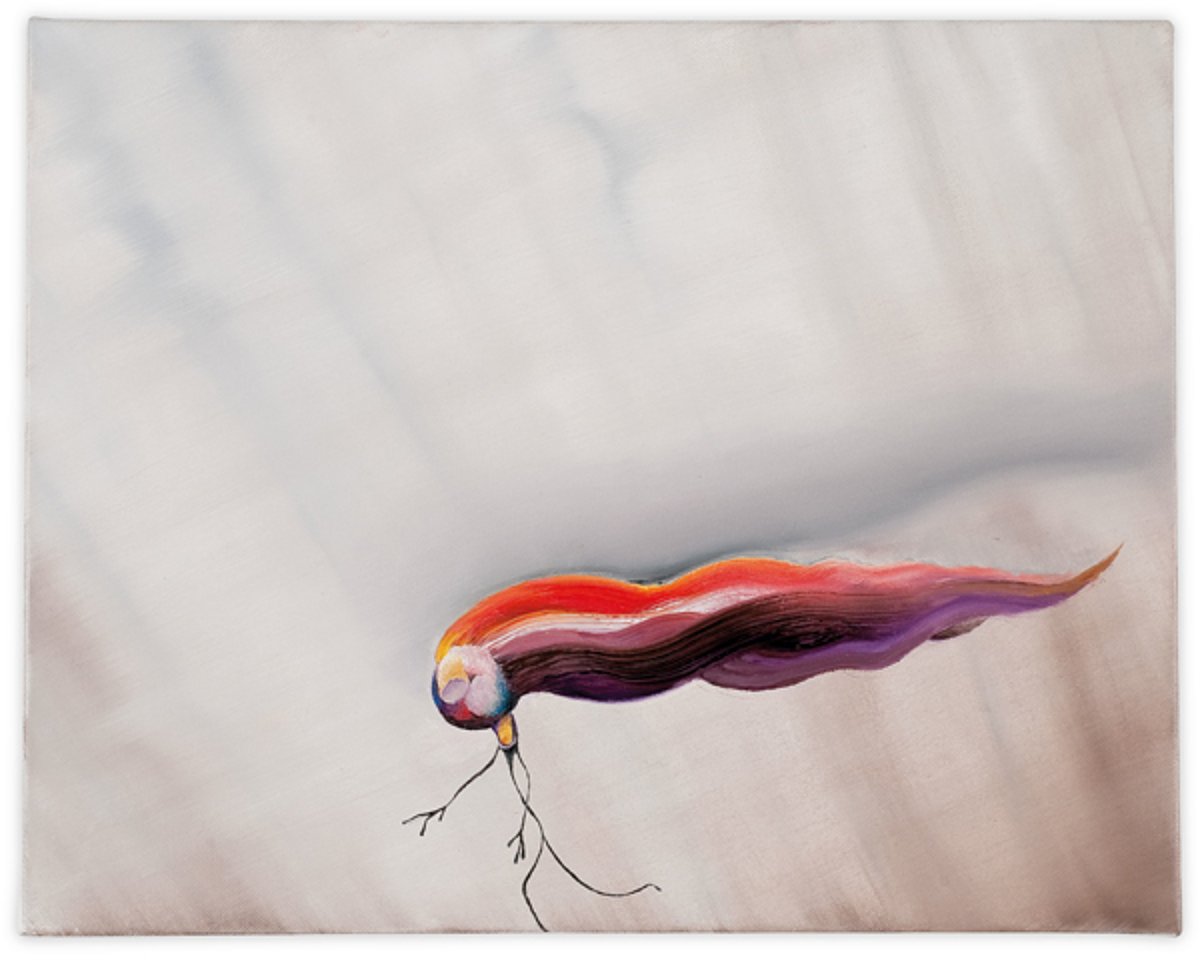 Die Traumlogik abstrahiert die Idee einer Bewegung, einen Moment der Eile, zu einer reduzierten Szenerie, in der die Figur in schillernde Farben zerrinnt. Der Titel "Jefa íauluh" hat seinen Ursprung in einer willkürlichen Buchstabenfolge und beschreibt das Bild einzig vom Wortklang her ohne dabei einen sprachgebundenen Sinn zu vermitteln.