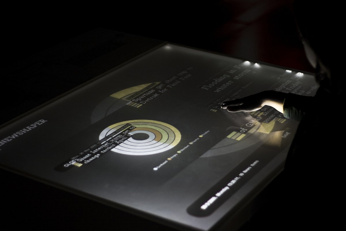 *Newshaper* is a tabletop interactive system that deals with the re-contextualization of daily news items gathered from live news feeds. It allows users to create their own relational networks and ‘maps’ based on actual live news streamed from the Internet. Due to the dynamic nature of live data streams, the system constantly creates different content for users and due to manipulations made by the users it generates different visual results of the same content. In a more general sense, users of the *Newshaper* system shape their own reality and perception about the daily news and share their emotional news-scape with other users. Most of the time, mass media sources deliver the daily news in a certain context. This context creates a meta-meaning which usually affects the simple meaning of the news. Thus, by tagging, by categorizing, by geo-locating, by making it popular or unpopular, mass media manipulates the perception of the daily news. *Newshaper* allows users to break these pre-defined structures delivered by the source.