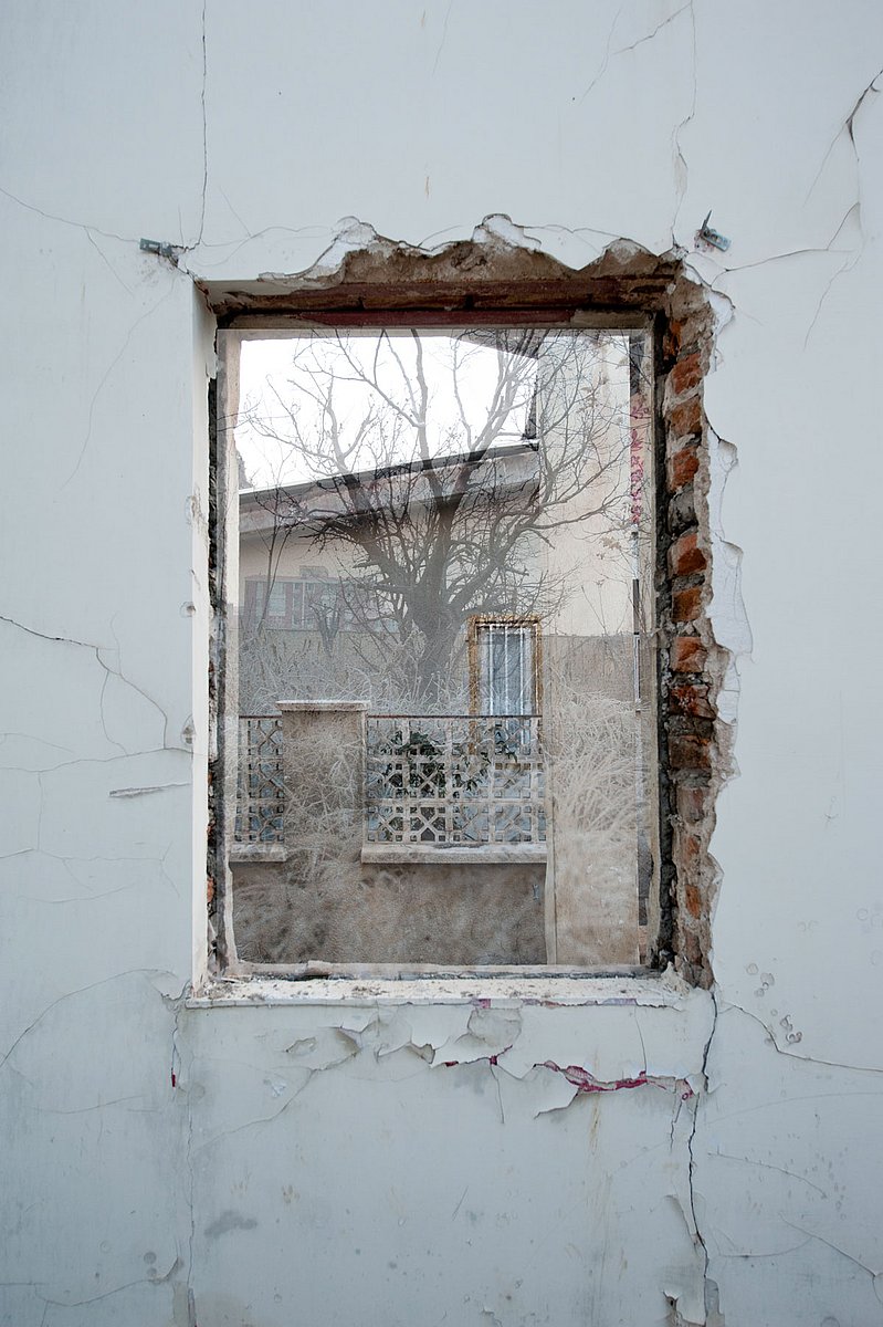 Um neue Wohnanlagen zu errichten, wurden in Teheran und seinen Vororten in den letzten Jahren viele traditionelle Hausgärten zerstört. Diese Gärten waren der soziale Mittelpunkt des Privatlebens der Bewohner*innen und oft generationenübergreifend mit Erinnerungen verbunden. Bevor diese Leerstände endgültig ausradiert werden, verdorren dort die Bäume, umgeben von verfallenden Mauern und zerbrochenen Fenstern. Diese Ästhetik des Verfalls stellt die Künstlerin Sanaz Rafii in den Mittelpunkt ihrer fotografischen Arbeit. Zusätzlich wird ihre Arbeit „You were always here“ Frauen im Protest gezeigt.