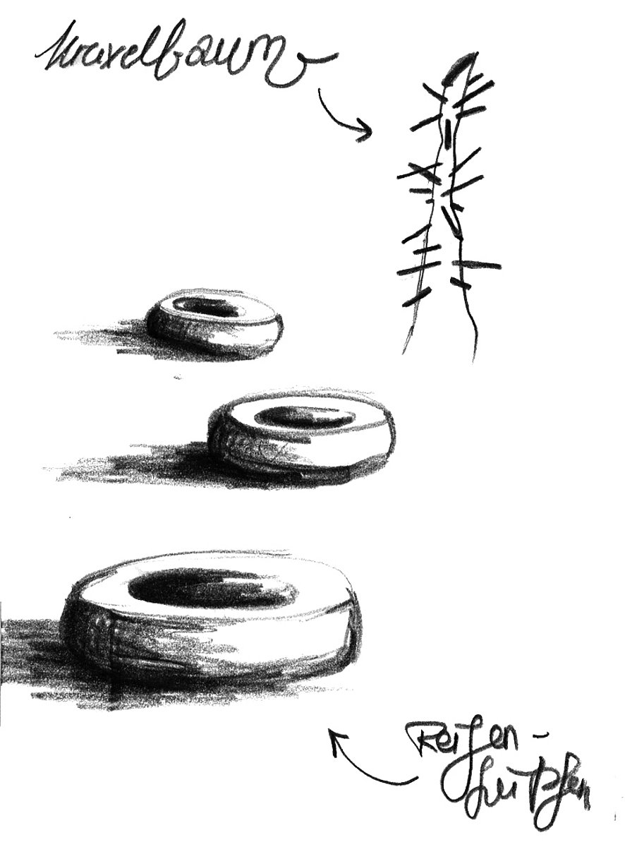 Es handelt sich hierbei um einen Sperrmüllplatz in unmittelbarer Umgebung der Wagner-Jauregg-Klinik. Mein Eingriff besteht nun darin, dass aus den alten und teilweise auch gefährlichen Dingen dort, neue interessante Spielgeräte und Sitzmöglichkeiten entstehen sollen um es allen Altersklassen zu ermöglichen sich hier, an einer der ruhigsten Stellen des Viertels niederzulassen oder zu spielen. Zum einen sollen die Kinder der Umgebung einen Platz zum Spielen, aber auch einen Platz um sich zu treffen und untereinander zu kommunizieren haben. Zum anderen sollen die älteren Menschen der Umgebung die Gelegenheit bekommen, der jüngeren Generation dabei zuzusehen, wie sie gemeinsam herumtobt.