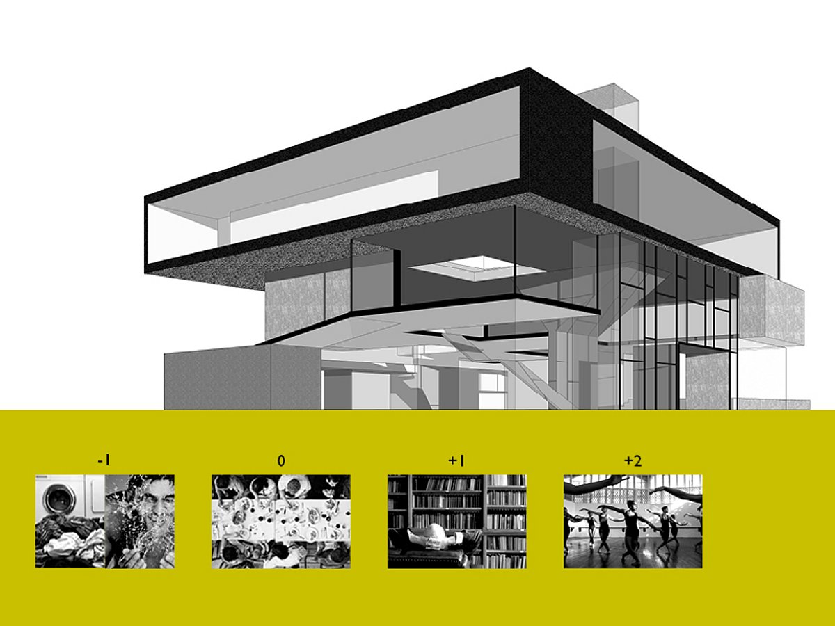 Diese beiden Aussagen von Hanna Arendt und Richard Sennett setzen die Grundlagen des architektonischen Entwurfes meines Gebäudes auf der Agora. Das Markthaus bildet einen Begegnungsort für Menschen aus der gesamten Stadt. Die kulinarische Verköstigung steht im Mittelpunkt. Verschiedene Arten der Verpflegung ermöglicht ein jeden Essen und Trinken, innerhalb einer Gesellschaft, zu sich zu nehmen. Ausgegrenzten Leuten bietet das Markthaus einen Platz um ihren Körper und ihre Kleidung zu waschen. Jedes Geschoß eignet sich einer bestimmten Nutzung an, im Untergeschoß ist es Reinigung, im Erdgeschoß Kulinarium, im 1. Obergeschoß Kontemplation und im 2. Obergeschoß Bewegung. Zusammen erzeugen sie einen heterogenen und kommunikativen Ort. Handeln im Sinne von Sprechen, Diskutieren, Vortragen, Tanzen, Beobachten und Zuhören ist das zentrale Anliegen in diesem Haus.
