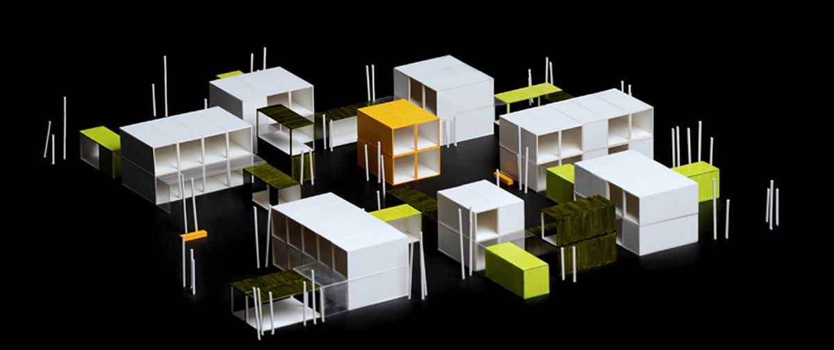 Eine Einheit besteht grundsätzlich aus einer Haupt-Wohn-Box, zwei Zusatz-Service-Boxen und der Freifläche die dadurch aufgespannt wird. Die Wohnbox ist grundsätzlich leer, nur Eingang, Stiege und Nasszellen haben ihren Platz. Die neutralen Räume könne individuell unterteilt und mit Funktionen belegt werden. So wird klassisches Familienwohnen oder Mehr-Generationen-Wohnen genauso möglich wie Wohngemeinschaften, Wohnen und Arbeiten oder Loftwohnen.