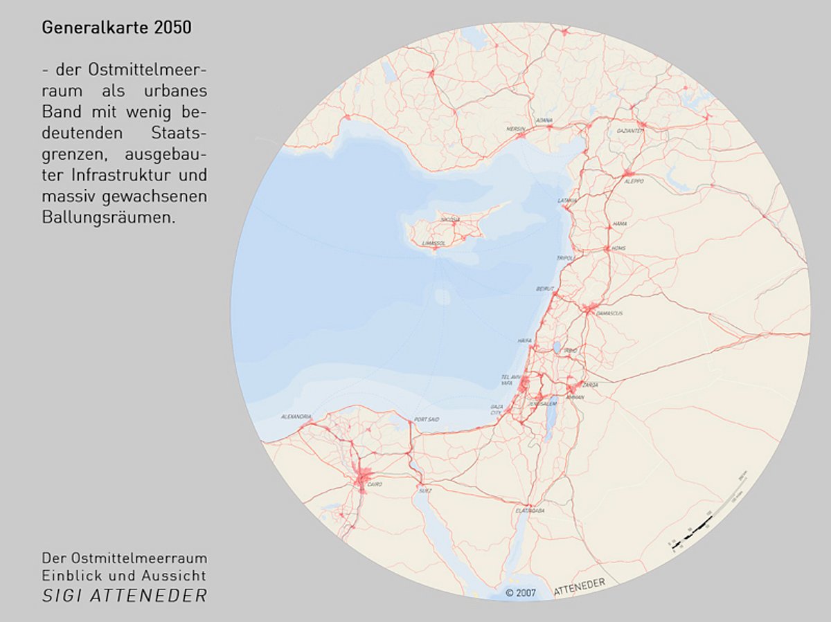 Anlässlich des internationalen Wettbewerbs „just jerusalem – jerusalem 2050“, welcher 2007 vom renommierten Massachusetts Institute of Technology in den USA ausgeschrieben wurde, beschäftigte sich Sigi Atteneder im Rahmen seines Diploms mit dem Raum des östlichen Mittelmeeres.