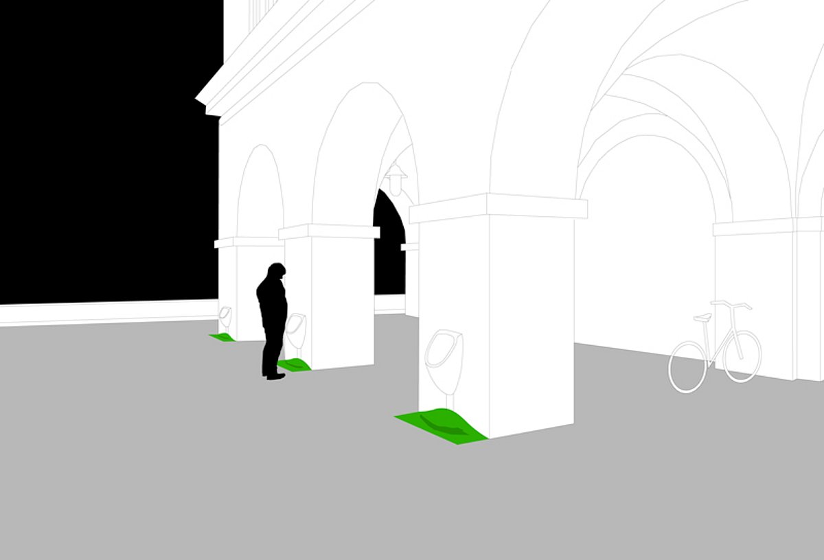 Eine Installation soll die Menschen zum Nachdenken anregen. An den beliebtesten Orten des öffentlichen Urinierens werden Pissoirs aufgestellt. Die speziellen Urinale funktionieren ohne Wasser und lassen somit, ohne hohen technischen Aufwand, den tatsächlichen Gebrauch zu. Aufgrund ihrer Exponiertheit ziehen die Pissoirs die Blicke auf sich. Die „Täter“ werden ihre Geschäfte nicht mehr unbeobachtet verrichten können, die dunkle Ecke verliert ihre Anonymität und wird ins Licht der Öffentlichkeit gerückt. Die Stadt wird gezwungen sein, sich über das aktuelle aber gern übersehene Problem Gedanken zu machen und Lösungsmöglichkeiten zu finden.