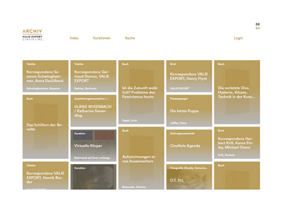 Der kontinuierlich anwachsende, recherchierbare Bestand umfasst unter anderem die Metadaten zur Bibliothek der Künstlerin sowie Digitalisate von Fotografien, Plakaten, Typoskripten, Konzeptblättern, Skizzen, Drehbüchern, Pressetexten, Einladungen, Vortragsmanuskripten und Materialien zu den Lehrtätigkeiten von VALIE EXPORT in mehreren Sprachen.