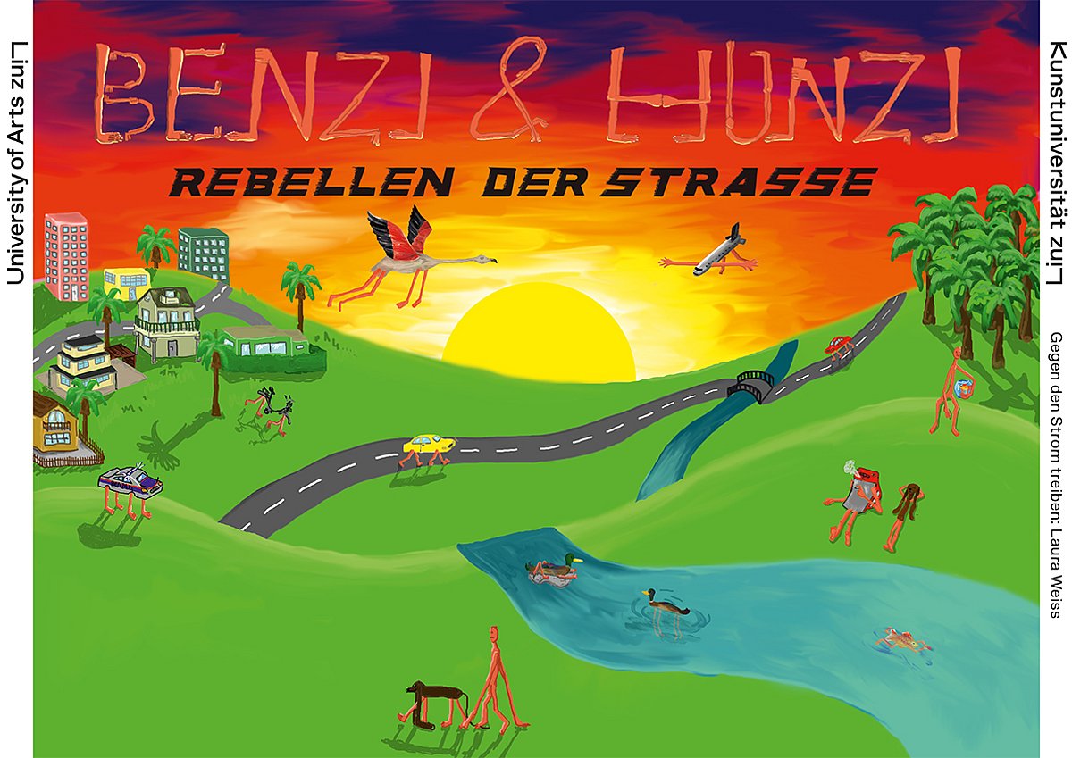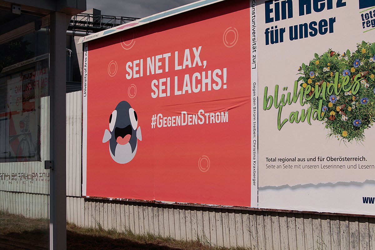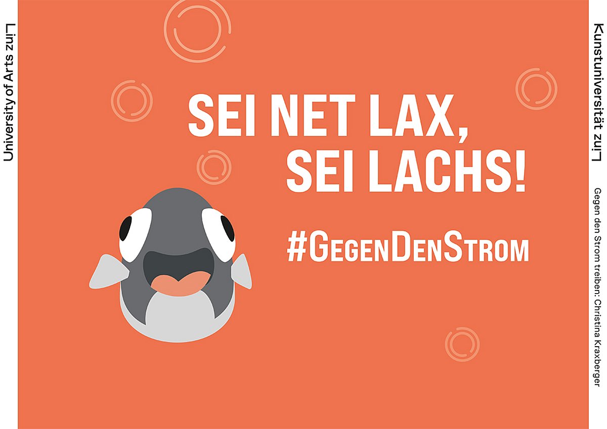 Studierende aller Studienrichtungen der Kunstuniversität Linz waren eingeladen, im Zuge eines Wettbewerbes in Kooperation mit der Firma Werbering, ein Plakat zu entwerfen, das ihr persönliches GEGEN DEN STROM TREIBEN zeigt.