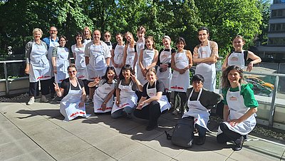 Die Atmosphäre war herzlich und entspannt und während die Studierenden gemeinsam schnitten, rührten und kochten fand ein reger Austausch statt.
