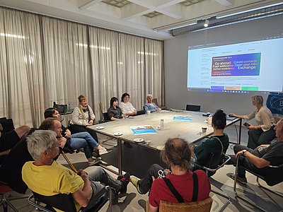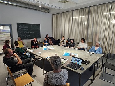 Bei einem Kaffee-Gespräch in den Werkstätten am Hauptplatz 6 konnten sich die Kolleg*innen der Verwaltung die Geschichten dazu anhören, Fragen stellen und sich austauschen.
