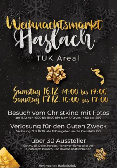 Am dritten Adventwochenende ist das Textile Zentrum Haslach auch am Haslacher Weihnachtsmarkt im Veranstaltungssaal des TUK Vonwiller Areals vertreten.