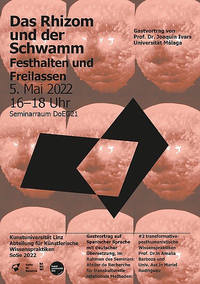 Ausgehend von dem gleichnamigen Buch wird der Autor, der bildende Künstler und Professor Joaquín Ivars, versuchen, die Möglichkeiten und Unmöglichkeiten des von Deleuze und Guattari entwickelten Konzepts des Rhizoms zu ermitteln und zu zeigen, wie der Schwamm als dessen Erweiterung und "negativ" erscheint. Versuchen wir, uns das Negativ des Rhizoms vorzustellen. Nein, das Negativ des Rhizoms ist nicht der Baum, es ist eine andere Figur: der Schwamm. Könnte der Schwamm, dessen unendliches und verfügbares Labyrinth aus einer einzigartigen Faltung und Aushöhlung besteht, das verborgene und unverzichtbare Gesicht des unendlichen und substantiellen Labyrinths des Rhizoms sein? Hängt sein Überleben, sein Sein nicht von seiner besonderen Art der Entleerung ab? Es geht nicht darum, diesen ersten Widerstand durch einen anderen vom Typ Rhizom-Schwamm zu erneuern. Um die verborgene Seite des Rhizoms zu erforschen: Wie könnte die Unterseite aussehen? Das ist nicht dasselbe. Das Rhizom wird durch die Progression erfasst, es bewegt sich auf seine Ziele zu, sein Vektor des Verlangens lässt es in alle Richtungen wuchern, es ist das konstitutive Bild des aktiven Verlangens, das bereit ist, sich zu verwirklichen. Er wächst nach außen. Der Schwamm hingegen lässt sich von der Strömung mitreißen und kehrt zurück, um sich zu fixieren, und zwar prekär. Sie hat keine Extremitäten oder Ziele, die sie anvisieren kann. Das Außen ist innen, aber auf eine andere Art und Weise, auf die Art und Weise, wie jeder einzelne es filtert und organisiert. Vielleicht ist es an der Zeit, ihm mehr Platz einzuräumen, auf bestimmte Einrichtungsgegenstände zu verzichten, andere Unterbringungsmöglichkeiten auszuprobieren.