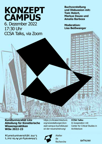 Präsentation des Bandes 'Konzept Campus. Transformationen des universitären Feldes' im Rahmen der CCSA Talks: In Kooperation mit Center for Critical Studies in Architecture