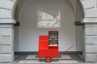 In der Reihe der Stories of Critical Change by kulturtankstelle präsentiert der CCGraph, ein fahrbarer Kinowagen, den Vortrag „Wunschmaschine Wohnanlage“ von Andreas Rumpfhuber.
