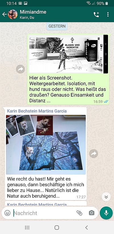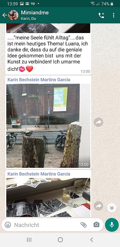 Während des Shutdown hat PhD-Kandidatin Luana Bechstein eine künstlerische Kooperation mit ihrer Mutter, Karin Bechstein-Martins Garcia, begonnen, die per WhatsApp dokumentiert wird.
