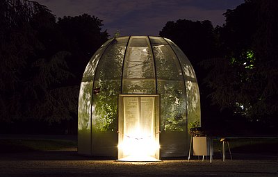 The Airship.01 reflect on the topic of air quality and oxygen production in an increasingly polluted and in summer over heated urban environment. At the same time, the immersive environment with plant habitats offers a rich sensorial experience and atmosphere to visitors. Only by 'breathing' visitors became active part of the interior climate performance (inhale oxygen, exhale carbon dioxide). In this sense, the Airship with its cooler temperature, intense forest scents and sound, provide an atmospheric environment. Rather than rationally, the visitors experience a natural forest habitat with their own senses and thus reflect complex global issues.    In the Airship the synergetic action of nature (several hundred plants) and technology (compact geometry 5 m in height, open to the sky, climate-active membrane, fog nozzles and ventilators) provides an urban oasis in the summerly city that also reduces the temperature around it. The Airship is designed to provide a cooled and cooling shelter in the centre of urban heat islands. Almost like a new urban furniture type the installation invites passengers to sit down, relax and breathe fresh oxygen.   *)The project is the kick off event for the upcoming research project “Tröpferlbad 2.0” by Green4Cities and partner institutions in Vienna.