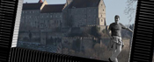 Die Besucher der Landesausstellung sind eingeladen sich in das Burgfenster zu stellen, sitzen, liegen… und so, ein Teil von Burghausens geneigtester Ansicht zu werden.