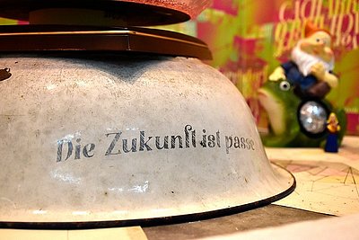 Der Satz “Die Zukunft ist passé” ist inspiriert von dem Satz “Die Zukunft war schon da”. Ein Konzept, das “vielen indigenen Sprachen”gemeinsam ist. Mit der Verwendung des französischen Wortes “passé” wollen wir den Charakter des aus der Mode oder dem Gebrauch gekommenen Objekts unterstreichen. Eine ständige Konfrontation mit der Vergangenheit in der Gegenwart und der Zukunft im Rücken.