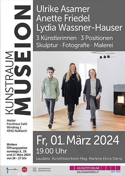 Eröffnung: 1.3.2024, 19.00 Uhr; zu sehen bis 17.3.2024 Kunstraum Museion, Atelier Forsthaus Sattl, Windhag 1, Nußbach
