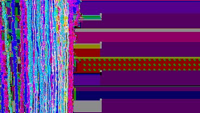 "Grellbunte Pixelblöcke, ungeschliffene Linien, widerspenstige Muster, die durchs Bild ruckeln, flimmern, aufblitzen, wabern, sich zusammenschieben, auseinandertreiben und eruptiv in amorphe Farbflächen zerbersten. Experimentelle „Sehstörungen“, die durch die roughen, abstrakten Rhythmusstrukturen der Electro-Sounds von Pita (Peter Rehberg) kongenial ergänzt werden. Ein technischer Affront gegen die Makellosigkeit hochauflösender digitaler Bilder und Töne, eine rauschhaft-sinnliche Attacke auf die Wahrnehmung." (Katalogtext, mk)