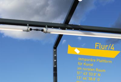 Flur/4 – temporäre Plattform für Kunst im ruralen Raum steht auf einem weitläufigen Feld in der Niederlausitz irgendwo zwischen Berlin und Dresden und besteht aus einem 40qm Betonfundament auf dem mithilfe eines funktionalen Metallgestells, eine klassische Ausstellungsbeleuchtung befestigt ist. Als Negation zu einem herkömmlichen White Cube dient diese bühnenartige Skulptur als Ort für künstlerische Feldstudien und Interventionen. Die räumliche Distanzierung von gewohnten Ausstellungsformaten bringt hier auch eine inhaltliche mit sich, so drängen sich aufgrund der Lage auch Bedingungen wie Sichtbarkeit, Publikum und Exklusivität, aber auch Vandalismus, Diebstahl und Wettereinflüsse auf. Für seine dem Nichts aus Gräsern und Kiefern ausgesetzte Lage versteht sich Flur/4 nur als ein vermeintliches Zentrum eines Geschehens und kann generell für zahlreiche Ereignisse fungieren.