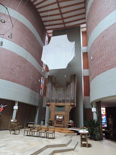 Seit Aschermittwoch befindet sich in der Pfarre St.Leopold Linz Urfahr ein von Andrea Edler-Mihlan gestaltetes Fastentuch. Es hat eine Doppelfunktion, denn mit Ende der Fastenzeit wird das Fastentuch, selbst zum Kreuz. Eine Lichtquelle beleuchtet die Kreuzverhüllung, das bestehende Kreuz wirft seinen Schatten auf die Kreuzverhüllung, wodurch diese zur Projektionsfläche des bestehenden Kreuzes wird. Die Form des Fastentuchs beschreibt das Logo sowie den Grundriss der Pfarre St. Leopold.