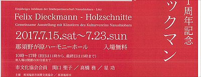 Die Gelehrten streiten sich über die Herkunft von Holzschnitten. Nachdem Felix Dieckmann seine Arbeiten schon in China zeigen konnte, werden seine Holzschnitte nun auch in NASUSHIOBARA/JAPAN gezeigt.