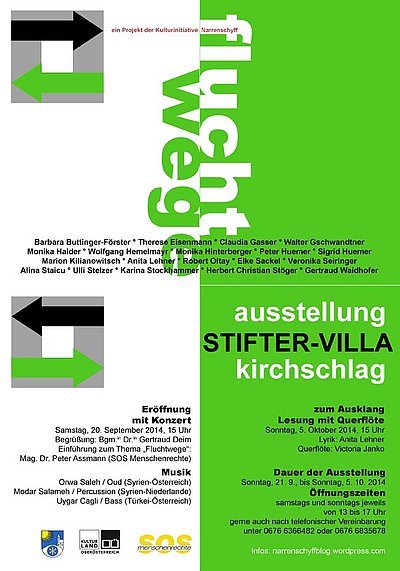 Eröffnung: 20.Sept.2014, 15.00 Uhr; Ausstellung bis: 5.Okt.2014 Stifter-Villa, Kirchschlag 38