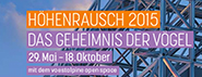 Die künstlerischen Ansätze des HÖHENRAUSCH 2015 beschäftigen sich mit dem Verhalten, der Genetik und Biologie, der Stimme, dem Flug und der Erscheinung der Vögel und nicht zuletzt damit, wie die Tiere kulturell repräsentiert und gesammelt werden.