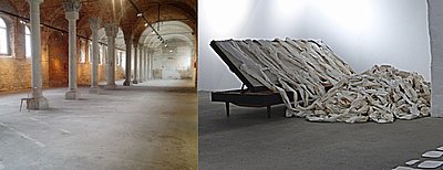 Innenseele ist ein Begriff, der aus dem technischen Bereich kommt.Er kommt in der Medizin, bei Kraftfahrzeugen und bei der Feuerwehr vor.Das Wort definiert einen inwendigen verborgenen Behälter in einem äußeren Behälter,der meist jedoch die Form eines Schlauches hat.Der innere verborgene Behälter hat die Aufgabe „die Seele“ zu schützen.Die Hipp Halle, ist ein zweischiffiger Raum, geteilt durch eine mittig verlaufendeSäulenreihe.In der Ausstellung von Gabriele Gruber-Gisler wird die „Innenseele“ in einem Schiffausgebreitet und die die Innenseele bedrohenden (Lebens)umstände im zweiten Schiffgegenübergestellt.Gezeigt werden Installationen und Objekte.