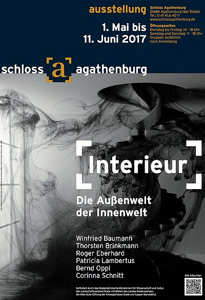 In der Interieurmalerei des 17. Jahrhunderts fand die Außenwelt oft durch einen Lichteinfall oder einen direkten Ausblick durch ein geöffnetes Fenster Eingang in die häusliche Szenerie und kann als Metapher der psychischen Verfassung des Individuums und seiner Verbindung mit der Außenwelt interpretiert werden. Heute ist die Außenwelt dank Fernseher und Internet zum Bestandteil des Innenraums geworden. Die im Rahmen der dritten Ausstellung zum Thema Interieur gezeigten Arbeiten, hinterfragen die Wechselwirkung von Außen- und Innenwelt auf vielfältige Weise. In den realen Räumen des Schlosses Agathenburg, öffnen sich in dieser Ausstellung weitere imaginäre, surreale und psychische Räume, welche bestehende Lebensräume in Frage stellen und die Grenzen zwischen Realität und Illusion verschwimmen lassen.