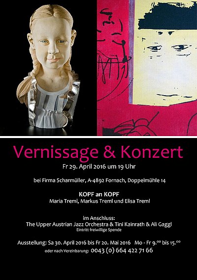 29. April 2016, 19.00 Uhr; Ausstellung bis 20. Mai Fa. Scharmüller, Doppelmühle 14, 4892 Fornach