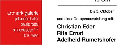 Eröffnung: 6.9.2019, 19.00 Uhr; Ausstellung bis 5.10.2019 artmark galerie, Palais Rottal, Singerstrasse 17, 1010 Wien