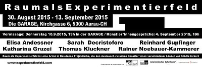 Im Zeitraum von 30. 8. bis 13. 9. 2015 werden die Linzer KünstlerInnen Katharina Gruzei, Elisa Andessner, Reinhard Gupfinger, Sarah Decristoforo, Thomas Kluckner und Rainer Noebauer-Kammerer den Stadtraum Aarau für die Entwicklung von neuen künstlerischen Arbeiten in Anspruch nehmen, wobei die Kulturinitiative GARAGE, welche im Zentrum von Aarau liegt, als Ausgangspunkt dient. Die entstanden Arbeiten werden am Ende der Residency am Donnerstag den 10. September 2015 ab 19h in der GARAGE präsentiert.Doch auch schon in der ersten Woche des Arbeitsaufenthalts, am 4. September, besteht die Möglichkeit, die teilnehmenden KünstlerInnen und ihre Arbeitsweisen im Rahmen eines  KünstlerInnengesprächs kennenzulernen.