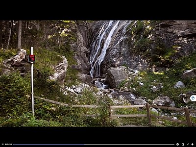 Die Videoarbeit GRÜN IN zeigt eine scheinbar naturbelassene Landschaft in satten Grüntönen. Dem auf den ersten Eindruck unberührten Naturidyll mit stetig fließendem Wasserfall, steht jedoch eine digitale Ampelanlage gegenüber. In roter Leuchtschrift ein Countdown, der unermüdlich die Sekunden herunter zählt: Grün in, 3, 2, 1...