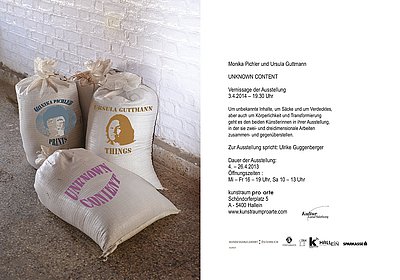 Um unbekannte Inhalte, um Säcke und um Verdecktes, aber auch um Körperlichkeit und Transformierung geht es den beiden Künstlerinnen Monika Pichler und Ursula Guttmann in ihrer Ausstellung, in der sie zwei- und dreidimensionale Arbeiten zusammen- und gegenüberstellen.